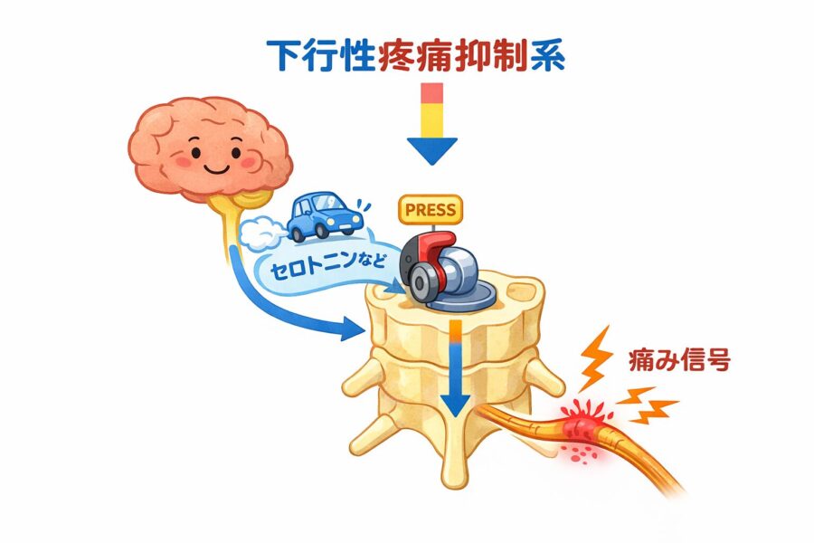 脳から脊髄へ送られる 「痛みを和らげる指令(痛みのブレーキ)」 でも調整されています。