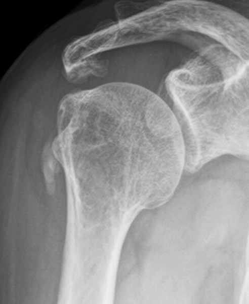 肩の腱板(けんばん)にリン酸カルシウム(石灰)が沈着し、炎症を起こす病気です。