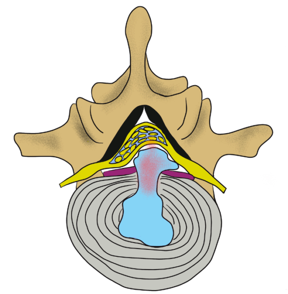 椎間板が変性し、外側に飛び出して神経を圧迫することで、腰の痛みや足のしびれを引き起こします。